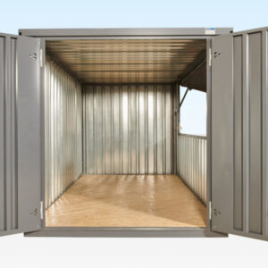 Flat pack container with side opening hatch (hinged from the top) fitted to the 3m side. This hatch can be positioned on either of the long sides to meet your requirements.